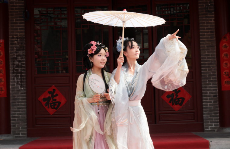 4月6日,游客在无棣古城观看“国风花朝”表演