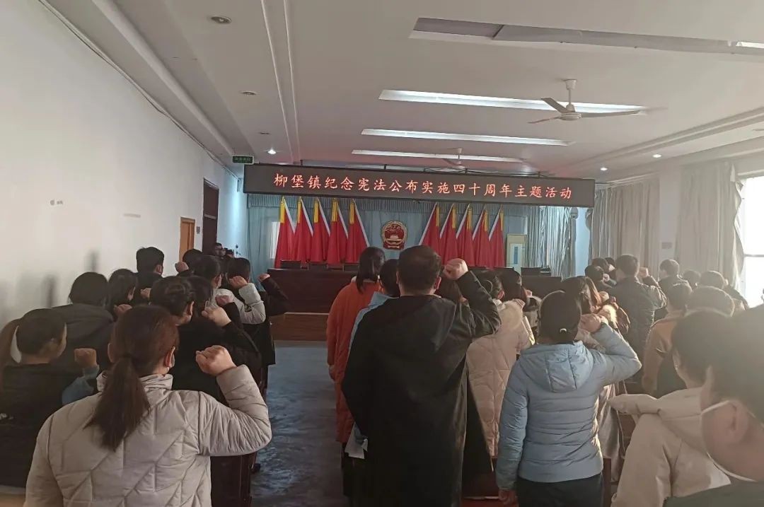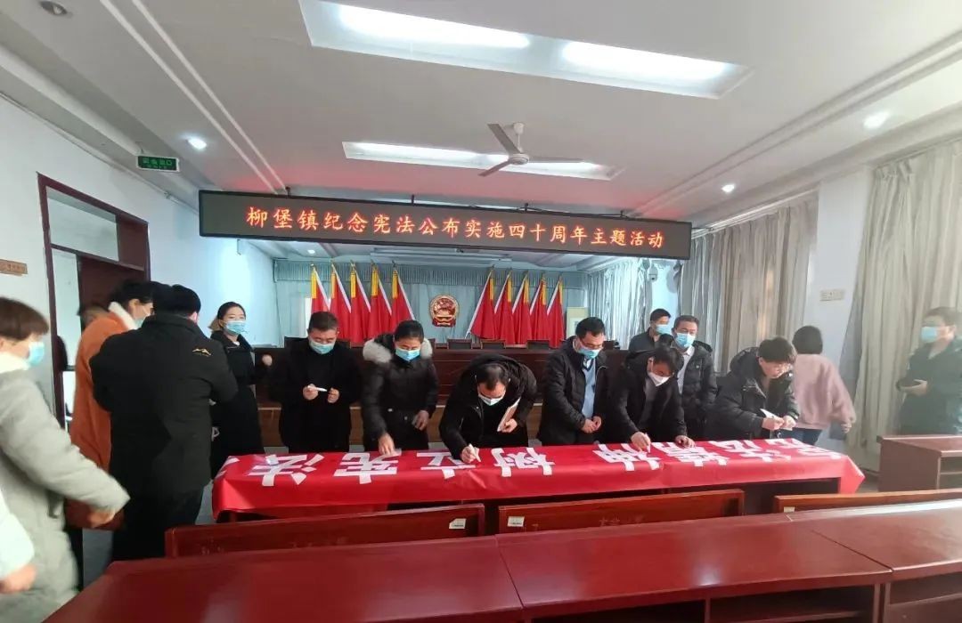 12月7日,柳堡镇全体干部职工开展宪法宣誓、签名活动,党委副书记徐振峰同志带领全体人员向宪法宣誓,强调全体机关干部学习宪法知识的必要性,号召大家厚植宪法情怀,捍卫宪法尊严。