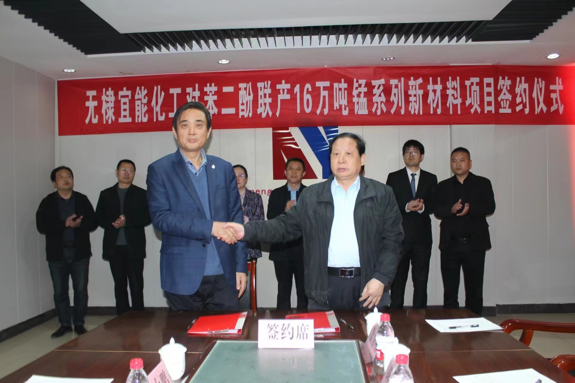 3月15日上午10时,无棣宜能化工有限公司对苯二酚联产16万吨锰系列新材料项目签约启动仪式在新海工业园项目现场隆重举行。