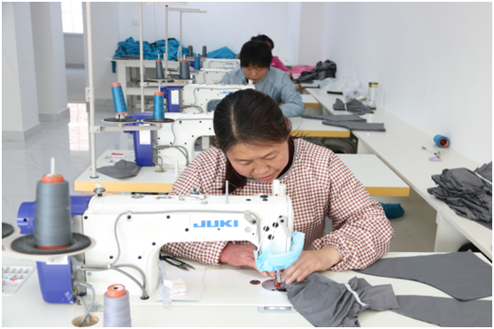 据工厂负责人介绍,来上班的都是附近小区里的家庭妇女,现有工人30余名,工资计件结算、多劳多得,除去在工厂加工外,部分小配件也可以带回家加工。建厂以来积累了稳定的客户资源,订单充足,每月按时发放工资,所以人员比较稳定。