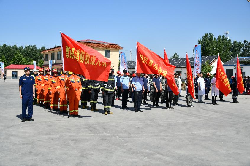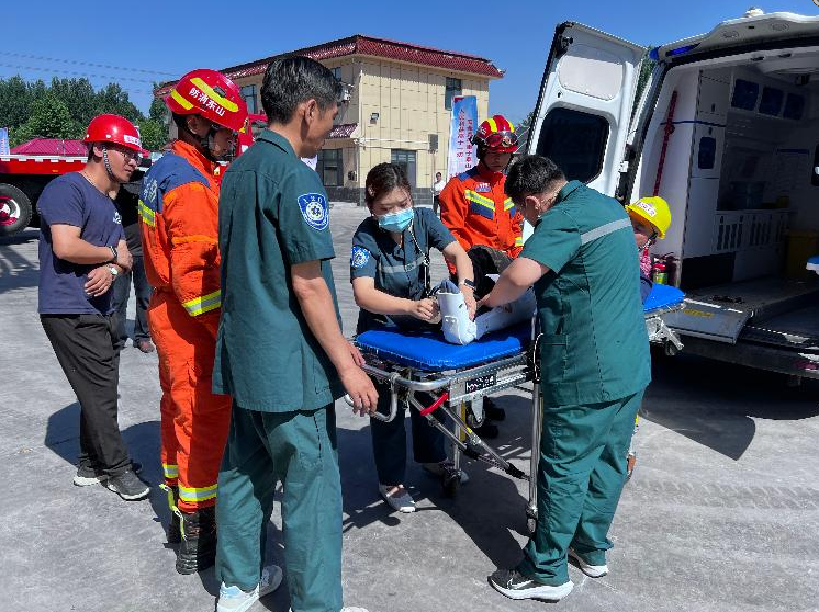 在演练现场,公安、消防、医护、9958救援、民兵、企业等领域多支应急救援力量分组列队,随着此次应急救援演练总指挥王斌的开始演练指令下达,各方应急救援力量相互配合,先后完成了企业厂区高空救援、机械伤害、有限空间救援、灭火救援四项应急救援演练活动,整个演练过程,环节紧凑,救援工作配合有序、处置得当,达到了迅速、有序开展安全生产应急救援目的。