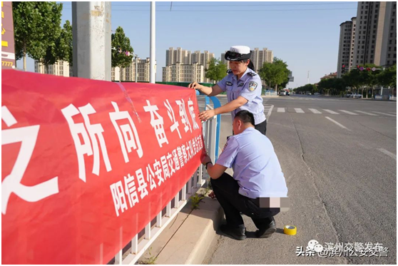 为确保中考期间交通安全有序,阳信县公安局交警大队采取有力措施,全力护航中考,全体民警辅警坚守一线,为做好所有考点和全体考生的交通保障工作,营造“安全、有序、和谐”的交通环境。交警大队积极清理考场周边违停车辆,摆放提示牌、引导牌,提醒过往车辆禁止鸣笛,为考生营造安静的考试环境;同时,不间断在考点周边巡逻纠违,引导送考车辆正常行驶,保障路面畅通。