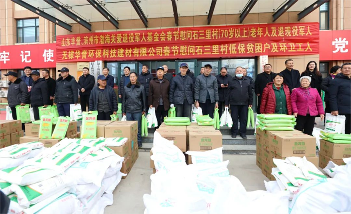 春节将至,年味渐浓。1月16日上午,无棣县棣丰街道馨安社区新时代文明实践站隆重举办石三里村乡贤联谊会。山东丰誉商贸有限公司联合滨州市渤海关爱退役军人基金会、无棣华誉环保科技建材有限公司,为石三里村70岁以上老人及退役军人、困难家庭和环卫工人献爱心、送温暖。