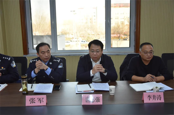 唐志强在讲话中强调,全力以赴抓服务、强保障。整合辖区有效资源,加强民警与社区的联动配合,在各小区逐步建立微型警务站,高效利用“警格+网格”的形式开展警务服务、巡逻巡防、安全隐患排查、矛盾纠纷化解、安防措施宣传等工作。加强警企联动,创新“一企一警务助理”民警入企服务模式,破解企业治安乱点难点,联合调处涉企纠纷,持续优化营商环境,全力护航高质量发展。全力以赴抓融合、促化解。要以化解风险保平安为共同目标,联动综合治理力量,实现派出所与街道综治中心、司法所、律师事务所、信访办、物业企业等力量的高效融合,开展四所联动、四办推进,联动开展纠纷摸排、风险防范、源头化解等工作,全力构筑“责任明晰、衔接紧密、流转顺畅、配合有力”的矛盾纠纷多元化解体系,推动疑难复杂矛盾纠纷妥善化解。全力以赴抓工作、促发展。推进“政务+警务”服务点建设,推行“政务+警务”新模式,继续将高频审批、便民服务事项延伸下沉,梳理帮办代办清单,将“零次办好”模式、“跑棣快”政务服务品牌内涵推向更深,推动政务服务“靠前一步”“想深一层”“抓早一分”,切实解决企业群众办事难、办事慢等问题。