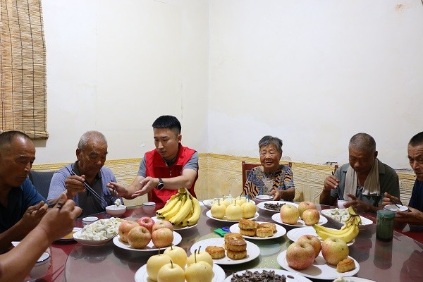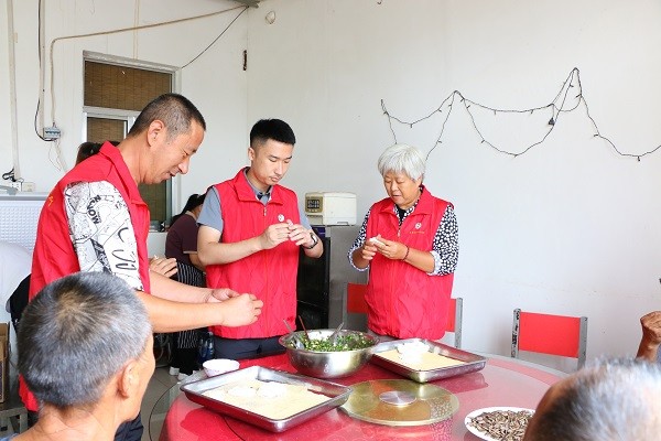 中午,党员志愿者和群众一起包水饺,吃月饼,共进爱心午餐。晚上,忙碌了一天的党员志愿者和群众们来到村会议室,围坐在一起,围绕当下的村风民风、婚丧嫁娶、赡养老人等问题畅所欲言,共话村庄未来。党员志愿者化身宣讲员,结合接地气的乡音,深入讲解了移风易俗的重要性和必要性,让在场的群众听得懂、入了心,赢得在场群众的鼓掌认可。