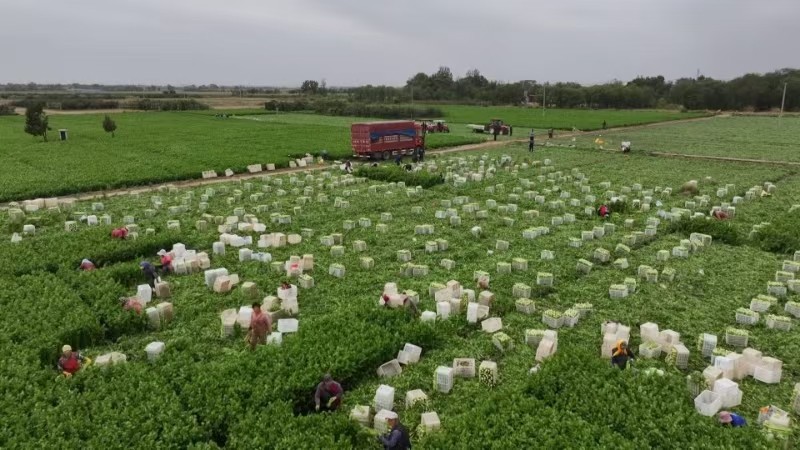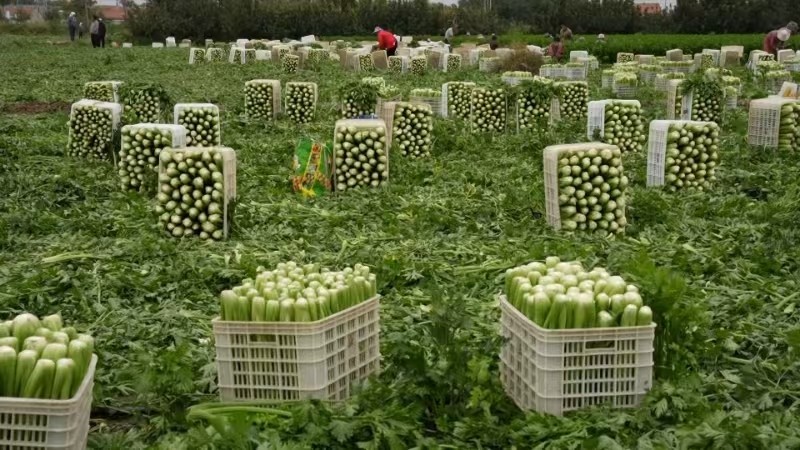 近日,阳信县商店镇近万亩芹菜喜获丰收,村民正忙着收割、分拣、打捆、装车,一派繁忙丰收的景象。