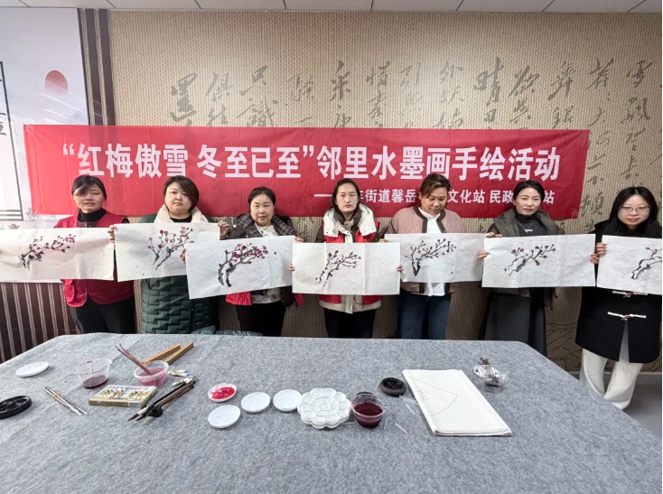 “日照数九冬至天,清霜风高未辞岁。” 冬至来临之际,为传承中华优秀传统文化,搭建邻里交流平台,12月19日,无棣县棣丰街道馨岳社区联合文化站、民政服务站举办 “寒梅傲雪,冬至已至” 邻里水墨梅花手绘活动,20余位各族居民踊跃参与。