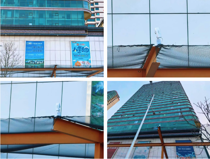 物理防护“无死角”,硬件升级织密网格。针对防护薄弱环节,社区打出硬件提升“组合拳”。一是对现有防护网进行“全面体检”与“精准焕新”,组织专业力量排查检修,累计更换老旧、破损网片100余米,加固松动部件,确保其稳固可靠。二是聚焦沿街商铺上方、露天停车区等原有防护盲区,科学增补高强度尼龙防护网300余米,有效扩大防护覆盖范围,为商圈公共空间撑起一把坚实的“安全伞”。
