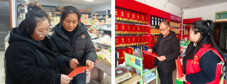 精准化宣传策略,提升宣教质效。街道实施精准化宣传策略,推动宣教工作从“大水漫灌”向“精准滴灌”转变。针对杂货店、酒店、饭店等可能涉及烟花爆竹销售、燃放的商户,开展地毯式上门宣传与排查,工作人员耐心解读相关政策法规,并在店铺醒目位置统一张贴禁放标识,引导商户主动成为政策宣传的前沿阵地和社会监督的重要哨点。