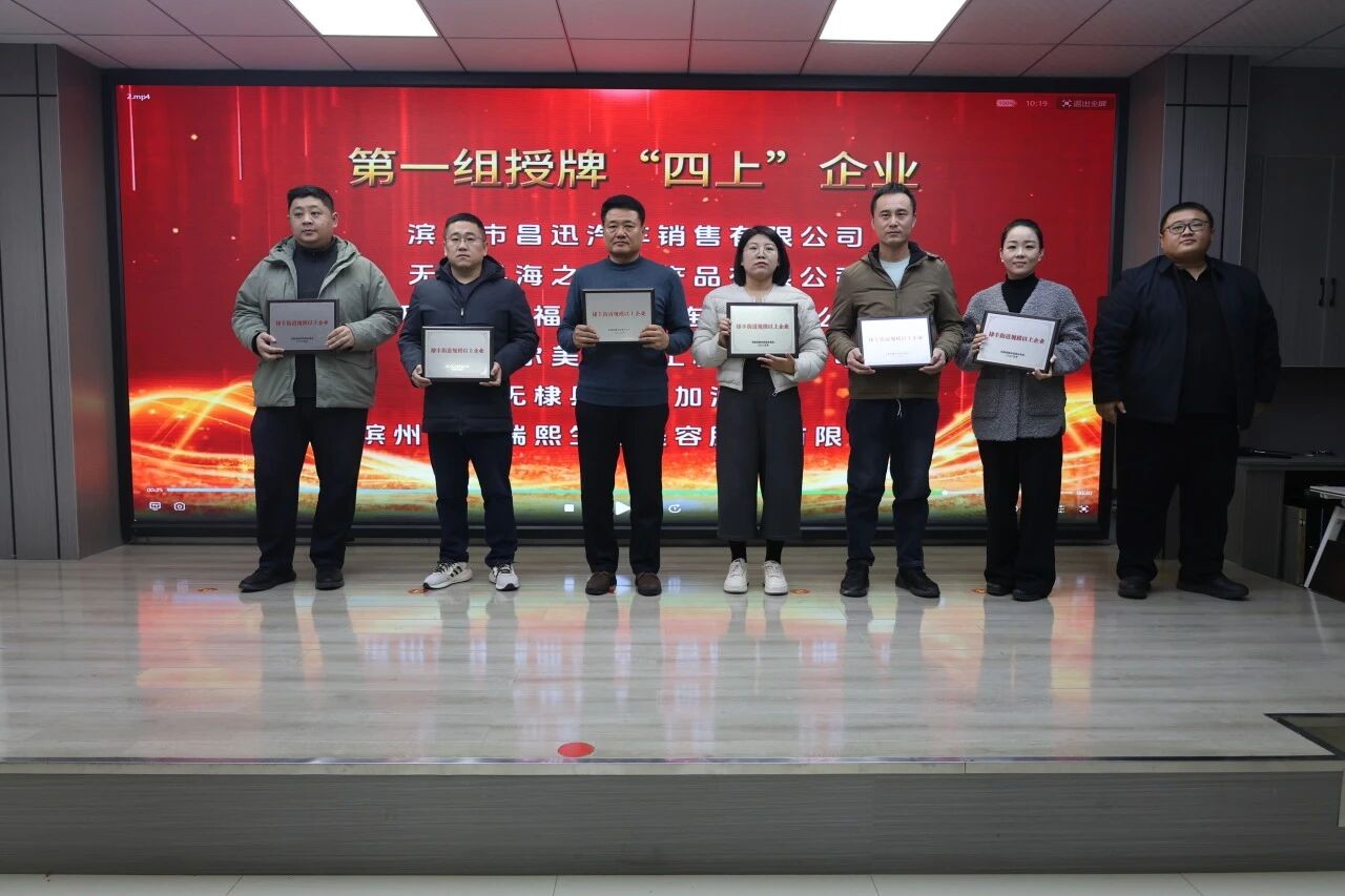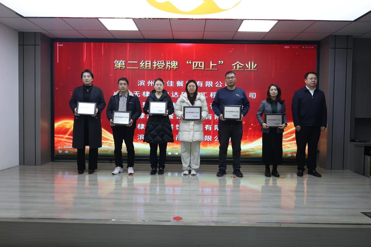 会议举行了庄重简朴的授牌仪式。唐志强、王阳为2025年新纳统的“四上”企业授牌。
