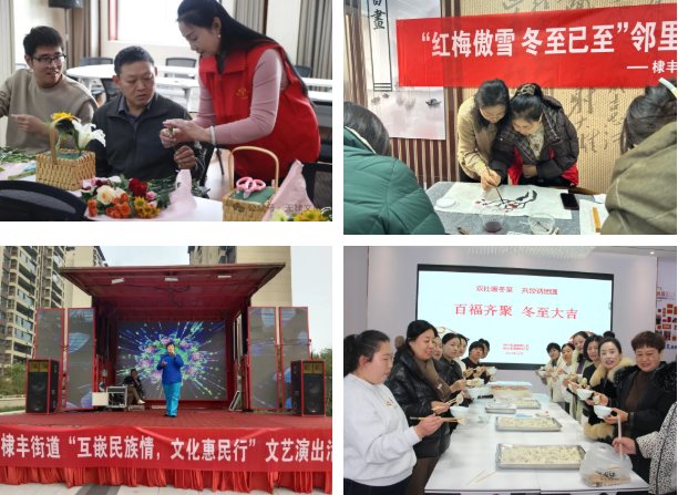 文化浸润,温情萦绕邻里。书院以文化为纽带,串联邻里温情。棣州社区推出插花、趣味套圈活动,“周末‘艺’相逢”文化直通车走进14家书院,让艺术滋养日常;馨宇社区“童心拓印添年味”活动,在亲子互动中传承文化、凝聚温情;馨岳社区开设水墨梅花手绘课,居民在笔墨间品味雅趣;馨和、馨泰社区联合举办“双社暖冬至,共饺话团圆”活动,以民俗拉近距离。