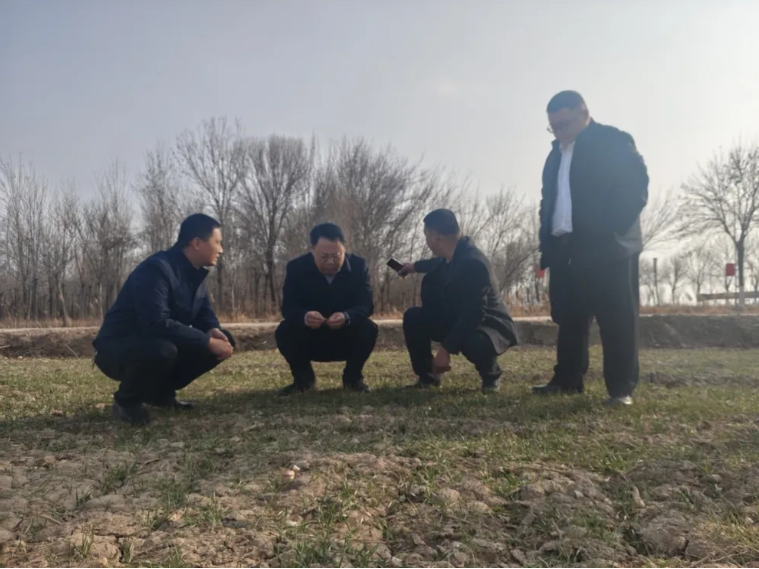 在中河西营村引黄沟,调研组看到去冬今春清淤整治后的沟渠整洁通畅,蓄水情况良好。唐志强对前期工作给予肯定,并强调:“沟渠清淤不是一劳永逸,要建立常态化清理机制,确保辖区所有灌溉排涝沟渠‘旱能浇、涝能排’,为农业生产夯实基础。”在西河西营村麦田,唐志强仔细察看小麦苗情长势与土壤墒情,与种粮大户深入交流:“浇水施肥一定要因地制宜、因苗施策,抢抓农时及时浇好返青水、施好拔节肥,为夏粮丰收打下基础。”他要求农技人员加强跟踪服务,把实用技术送到田间地头。在李白杨村南灌溉渠,调研组实地查看清淤效果,并对去年清淤产生的淤泥平整情况给予高度评价。唐志强强调:“清淤产生的淤泥要及时平整,涉及的生产路要尽快修复,绝不能因为细节问题影响农时、耽误生产。”村负责人当场表示,将立即组织机械人工,确保道路畅通无阻。在杨白杨村已浇灌的麦田里,泥土湿润松软,喝足“返青水”的麦苗愈发翠绿。唐志强鼓励群众:“当前正值黄河水充足的关键时期,要抢抓时机、能灌尽灌,科学补水、精细管理,确保今年有个好收成。”他要求水利部门加强水源调度和渠系巡查,全力保障春灌用水需求。