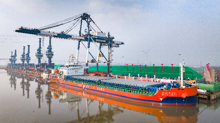 规模化发展蓝图正加速落地。李硕介绍,第二艘新能源船舶将于2026年春节前交付运营,第三、四艘正在黄海造船厂紧张建造,计划2026年4-5月陆续下水;近期又签署22艘船舶建造合同,将确保2027年5月底前交付26艘。按规划,这50艘万吨级新能源船舶将完成烟台至滨州每年5000万吨铝矾土转运的全绿色运力替换。未来,魏桥创业集团还将开发纯电、集散两用新能源船,拓展滨州至京唐、曹妃甸等短途航线,并将成熟船型与设计推广至长三角、珠三角,让绿色航运种子在全国近海生根发芽。