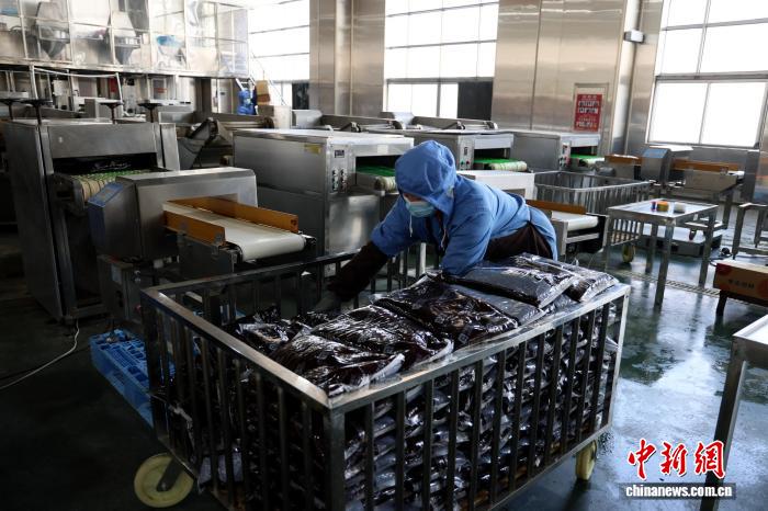 尚亿食品生产车间内,工人正在将刚下线的馅料整理打包。沾化区委宣传部供图