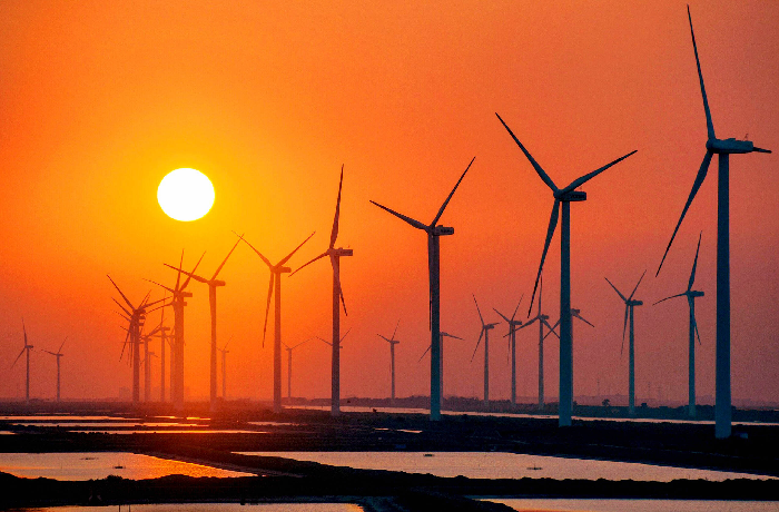 如今,滨州已形成以风电、光伏为主体,氢能、地热、生物质能为补充的多元清洁供能体系。图为北部沿海风电场(资料图)
