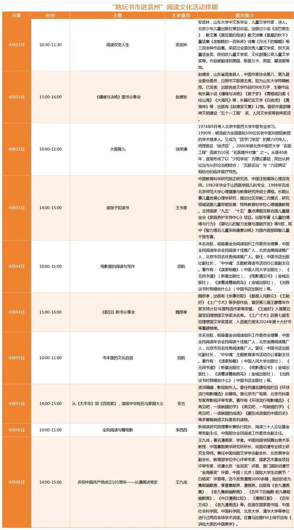 安武林、赵德发、徐荣谦、王书荃等作家、文化名人将亲临现场。还记得北京地坛书市上赵德发分享会的热闹场景吗?那种与作家面对面畅谈创作心得的体验,滨州也有了。