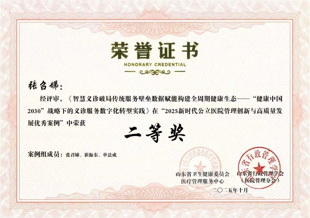 12月6日,山东省卫生健康委员会医疗管理服务中心、山东省行政管理学会联合公布2025年度新时代公立医院管理创新与高质量发展优秀案例评审结果。