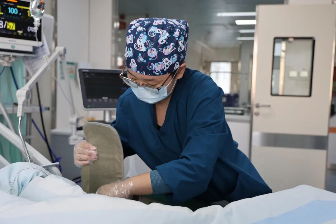 监护室内,医护人员24小时不间断守护,紧盯监护仪上每一个跳动的数字,细致完成每一次翻身、拍背、气道护理。