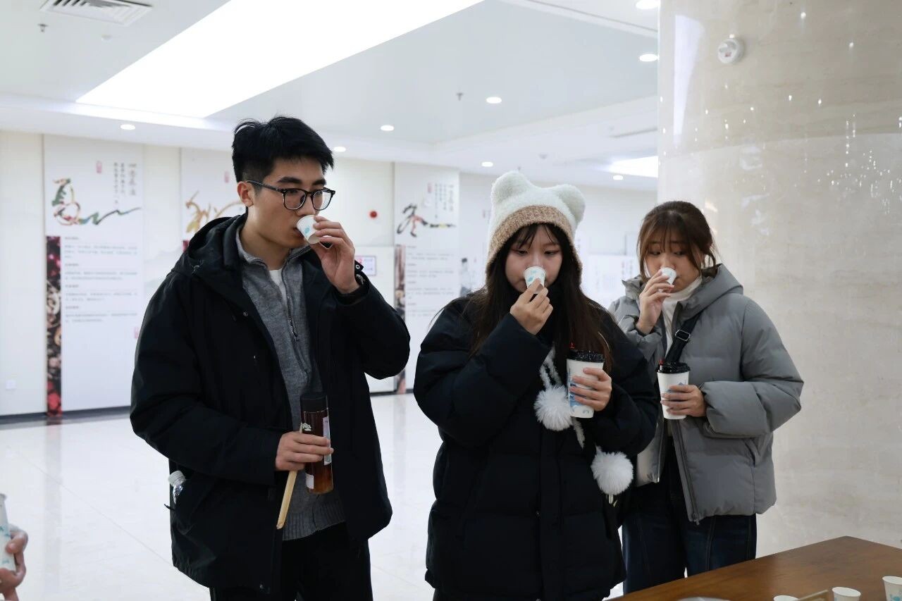 参观团队来到医院中医药文化科创中心,与现场工作人员交流了药食同源产品的品类、工艺等相关情况,并品尝了中药养生奶茶,表示药食同源养生产品及中医药文创产品在未来具有广阔的发展前景。