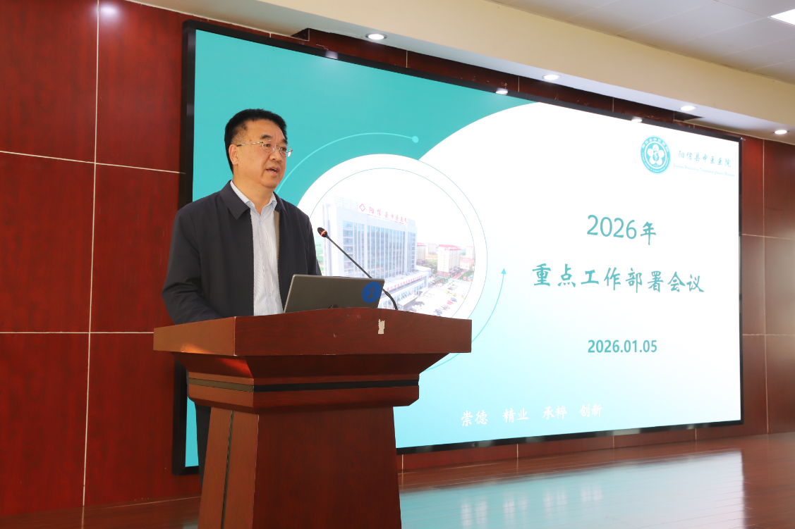 1月5日,阳信县中医医院召开2026年重点工作部署会议,全面总结近五年发展成效、分析当前形势,系统部署新一年任务。由医院党委书记马清华作工作部署,副书记劳万升主持会议,全体中层主任、护士长、质控组长参会。