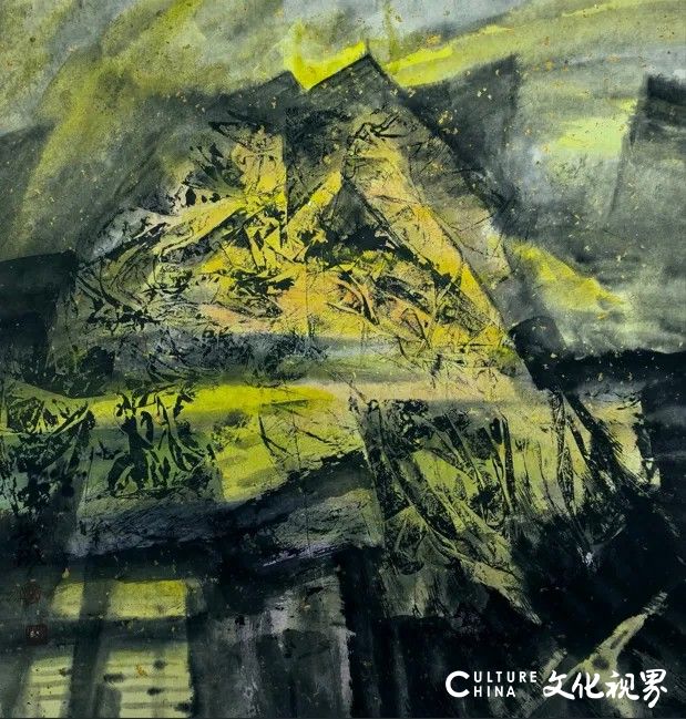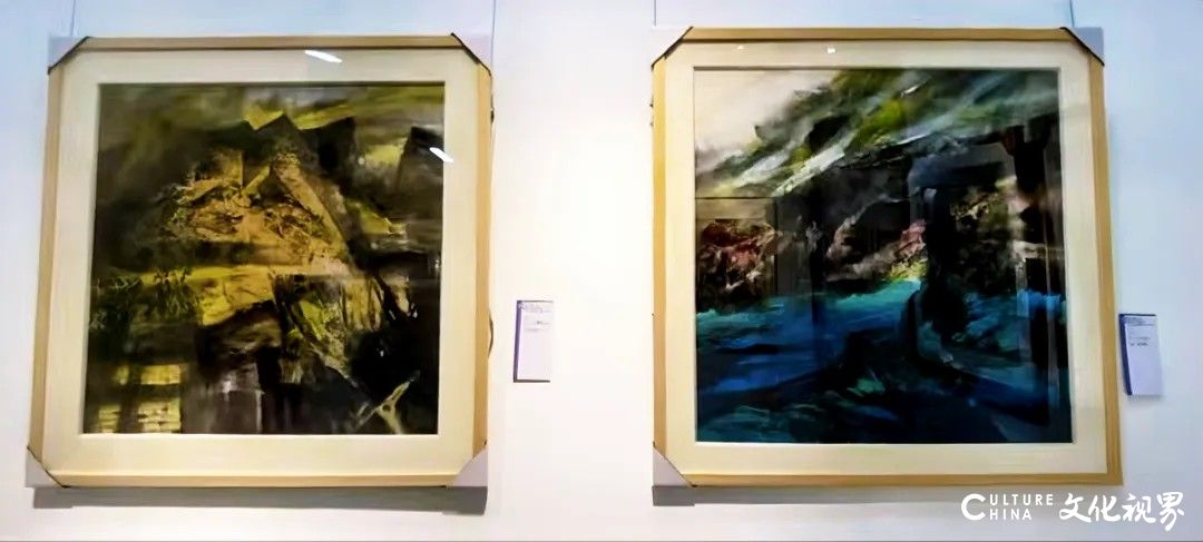 此次艺博会,赵先闻展出的作品,以奔放的笔痕裹着浓墨重彩,将山水意象拆解为肌理与色彩的碰撞:墨色的沉郁质感,与青绿、明黄等亮色交织晕染,既承续传统水墨的笔力张力,又借现代色彩的浓烈节奏,让山水跳出具象桎梏,化为情绪与意境的视觉载体。笔触随性却层次分明,在水墨与色彩的交融里,铺就出传统语言的当代鲜活质感。