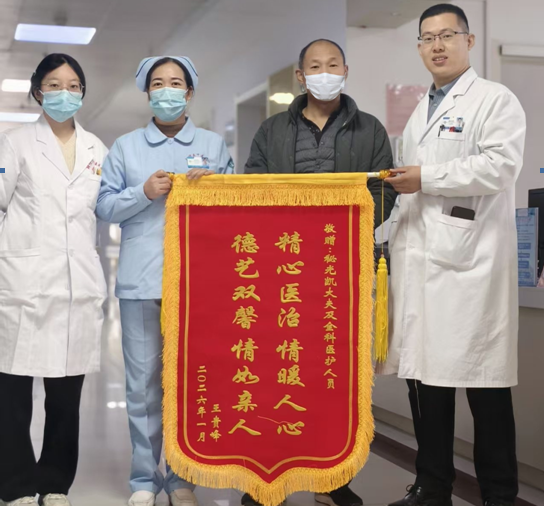 近日,一名脚踝骨折术后需取出内固定物的患者,专程到阳信县中医医院骨外科,向医护团队赠送锦旗,诚挚感谢全体医护人员的专业诊疗与贴心关怀。