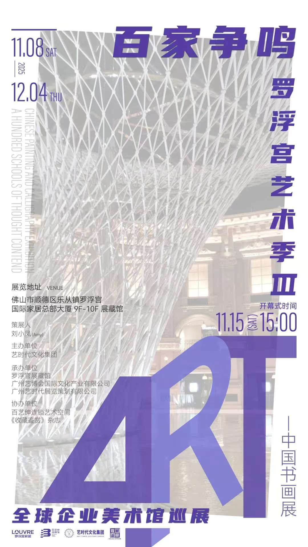 2025年11月8日至2025年12月4日,百家争鸣-全球企业美术馆巡展罗浮宫艺术季Ⅲ·中国书画展在广东省佛山市顺德乐从罗浮宫国际家居总部大厦9F-