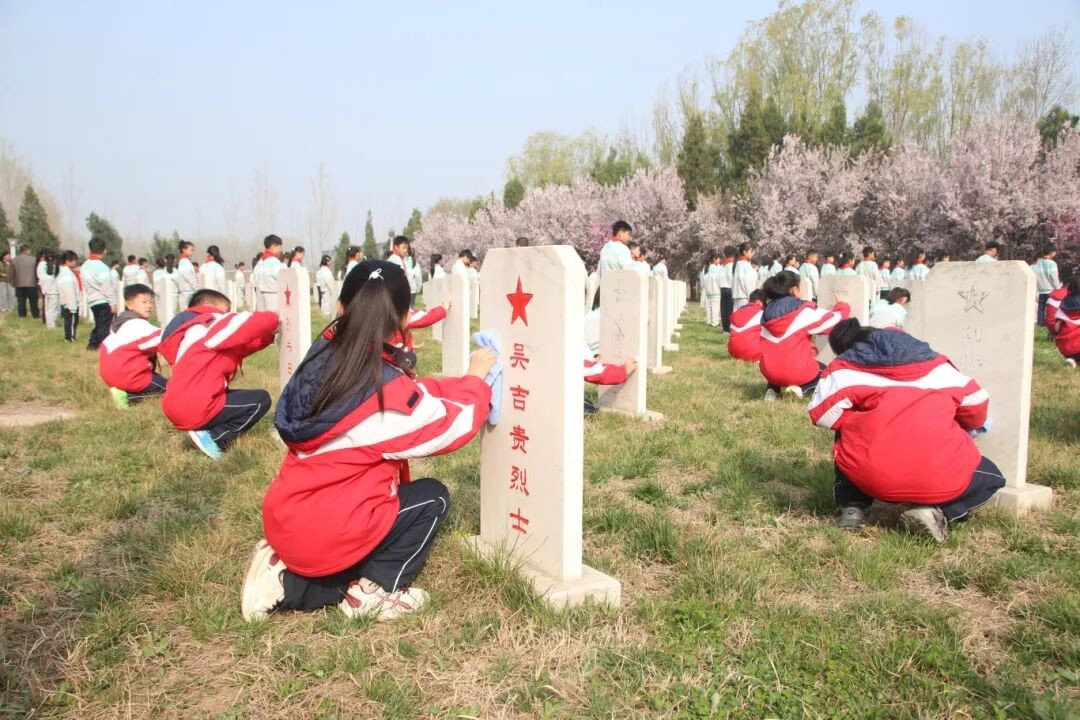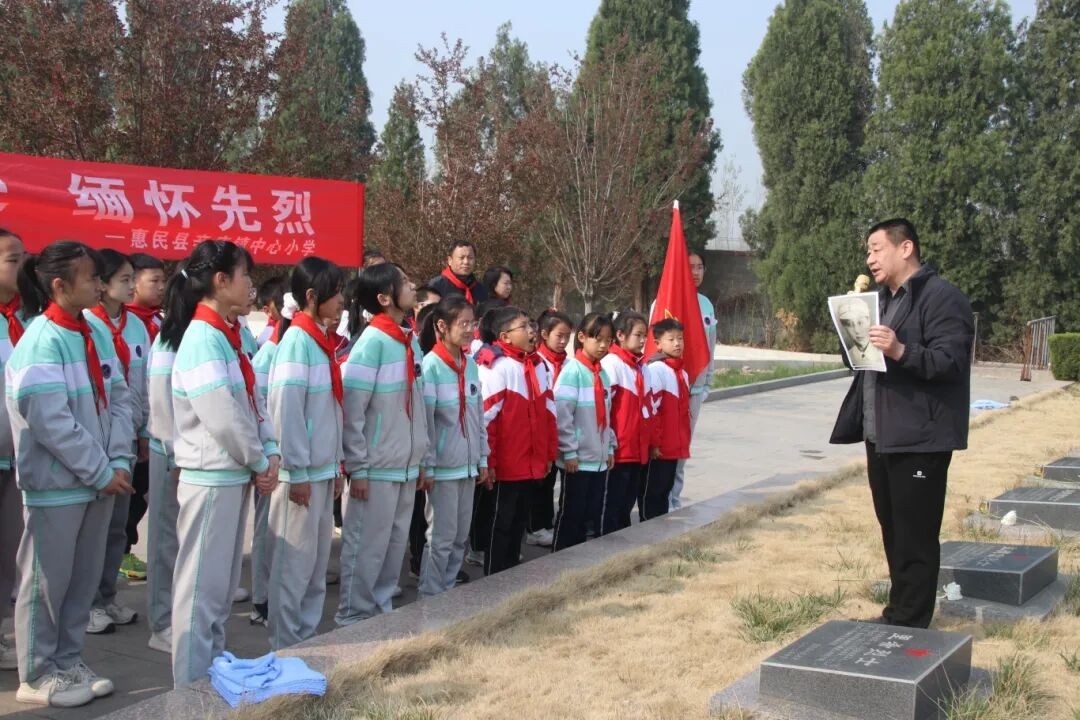 为传承红色基因、讲述英烈事迹,4月1日,在清明节即将到来之际,辛店镇中心小学45名师生与新时代文明实践志愿者一同前往惠民县烈士纪念园,参加由县退役军人事务局等8个单位组织的清明祭英烈活动。