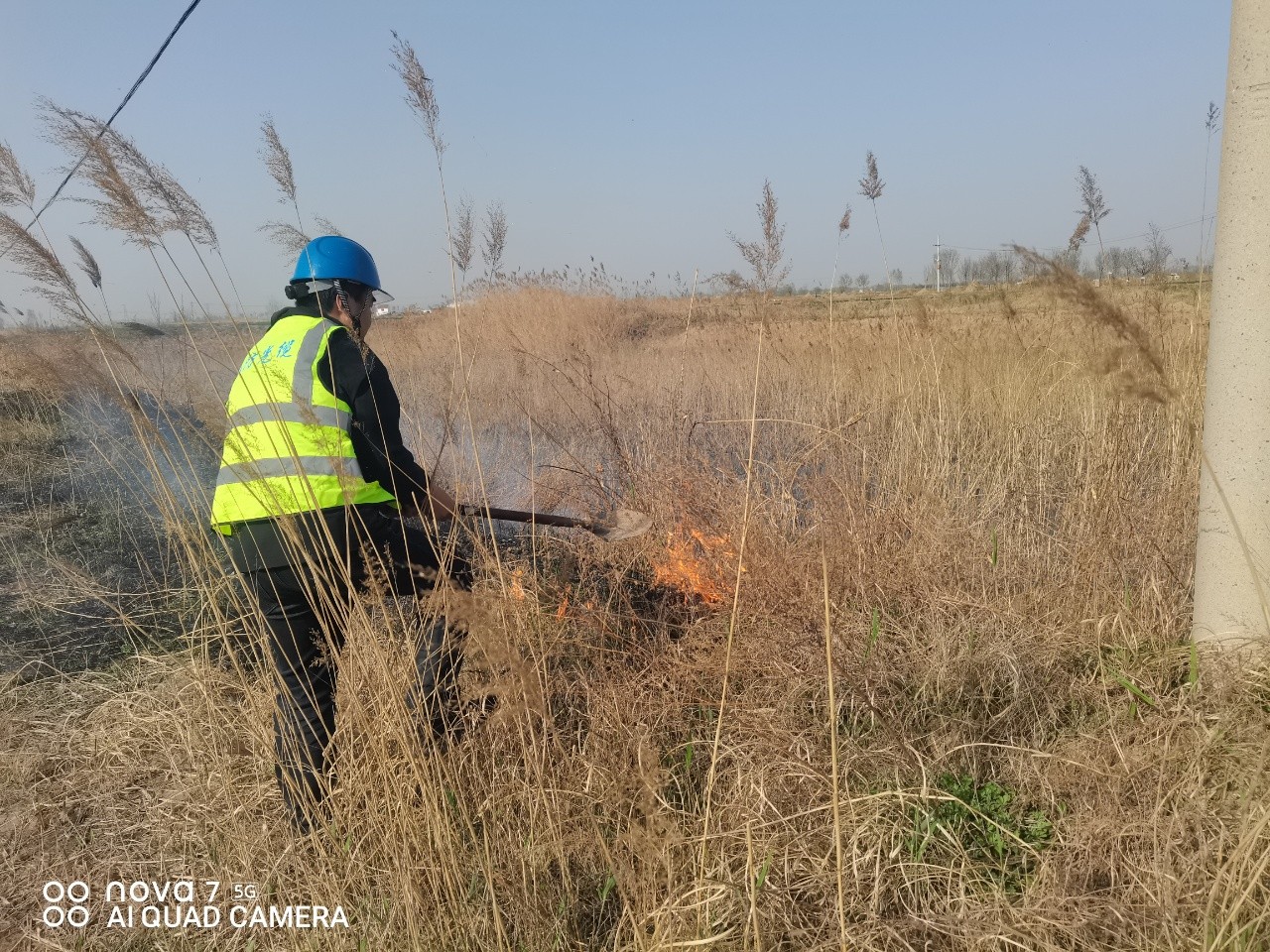 面对突发险情,两人凭借日常安全生产培训和应急演练积累的处置经验,第一时间分工协作:苗强立刻拨打119报警并同步上报公司应急管理部门,崔太平迅速从巡线车取出备用灭火器、铁锹等工具,第一时间清理着火点周边干草杂物,切断火势向通信线路蔓延的路径。由于着火点位于农田深处,消防车无法快速抵达,两人在无专业防护装备的情况下,顶着浓烟和高温奋力扑救40多分钟,成功将明火控制在局部区域,为后续消防人员到场彻底处置争取了黄金时间。