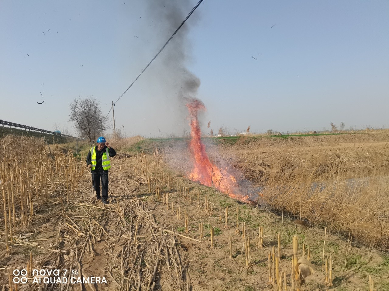 巡线员工苗强、崔太平按照计划执行京沪高速段主干光缆巡检任务,行至滨城区陈哑巴村附近农田区域时,发现不远处浓烟升腾——田边一处草垛突发火情,风助火势快速向周边蔓延。“当时着火点距离通信主干线路不足十米,正值农忙时节田间可燃物密集,一旦火势失控将直接影响区域通信网络安全,情况十分危急。”苗强回忆道。